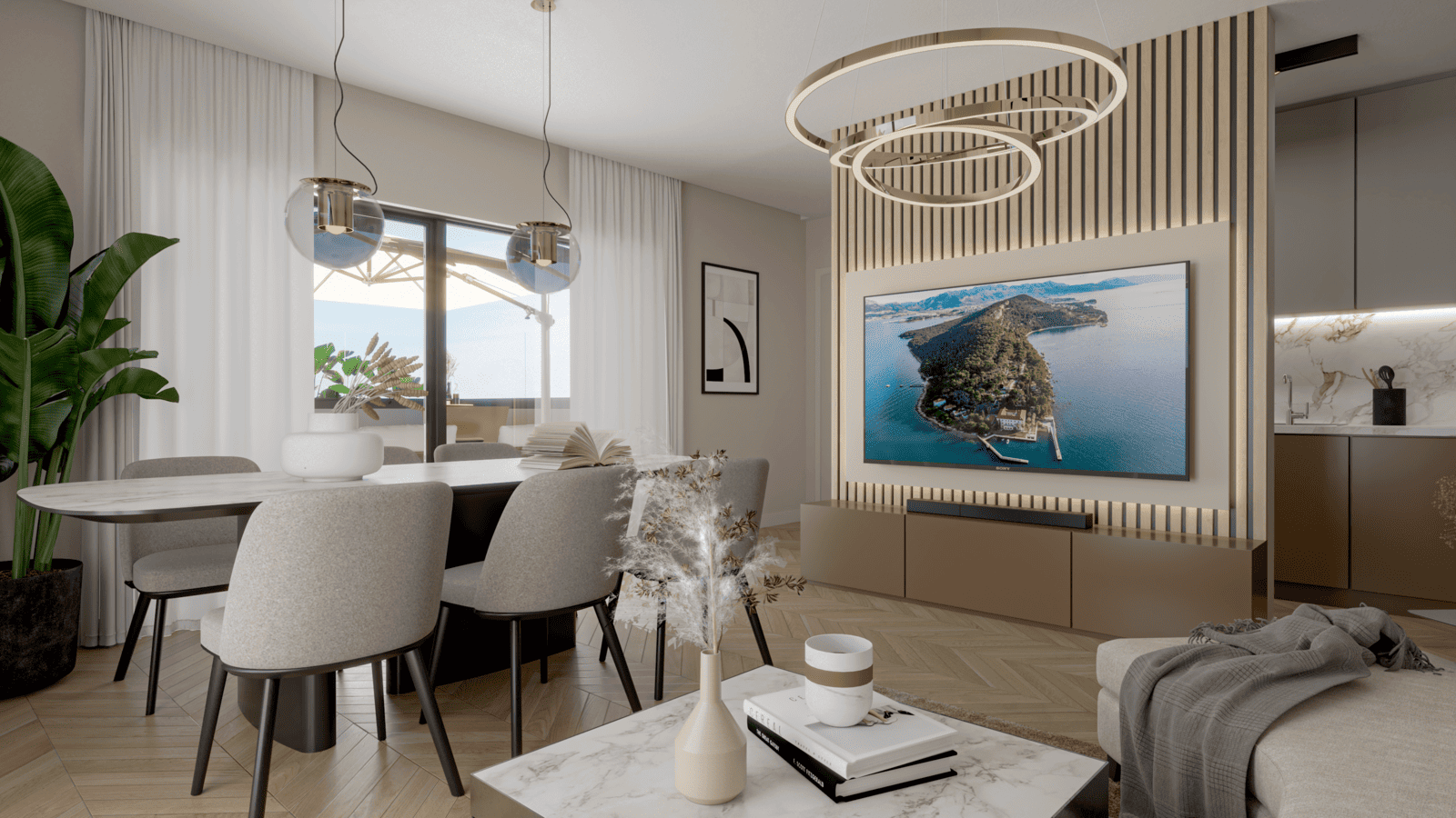 We present you a new project of residential buildings located in the attractive location of Put Orišca, near Stobreč. This project offers modern architecture, high-quality materials and carefully designed residential units that meet all the needs of modern living. The location provides an ideal place for family life, with proximity to all necessary amenities such as schools, kindergartens, shops and public transport. In addition, a beautiful view of the sea and nature makes this project the perfect choice for those looking for a quiet and comfortable living space.